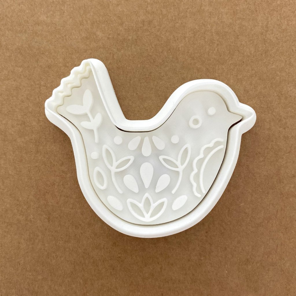 Vykrajovátko se skládá ze dvou částí - obvodové vykrajovací a vnitřní části s reliéfem. Díky oddělené vnitřní části můžete vykrajovátko použít na libovolně tlusté těsto.