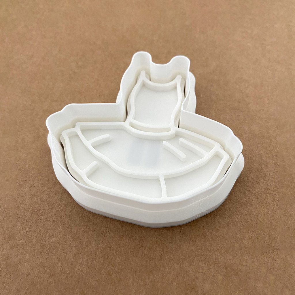 Vykrajovátko se skládá ze dvou částí - obvodové vykrajovací a vnitřní části s reliéfem. Díky oddělené vnitřní části můžete vykrajovátko použít na libovolně tlusté těsto.