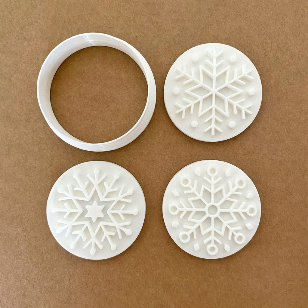 Sněhové vločky - 3 ks (1x vykrajovátko kruh + 3x razítko)