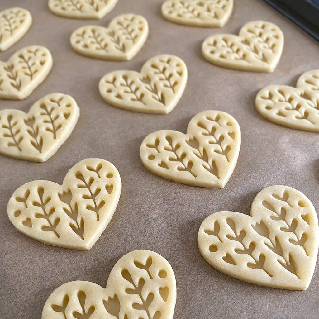 Vykrajovátko se skládá ze dvou částí - obvodové vykrajovací a vnitřní části s reliéfem. Díky oddělené vnitřní části můžete vykrajovátko použít na libovolně tlusté těsto.